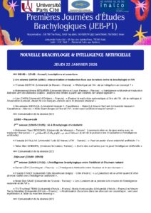 La Coordination Internationale des Recherches et Etudes Brachylogiques (CIREB-PARIS) et ses partenaires informe que les Premières Journées d’études brachylogiques à Paris (JEB-P1), organisées en partenariat avec l’Université Paris Cité et l’INALCO, se tiendront les 22 et 23 janvier 2026 à l’Université Paris Cité, conformément au programme ci-joint (avec copie PDF et images). Il est précisé que la rencontre se déroulera en mode hybride (en présentiel et à distance) et que le lien pour la participation à distance est le suivant:
